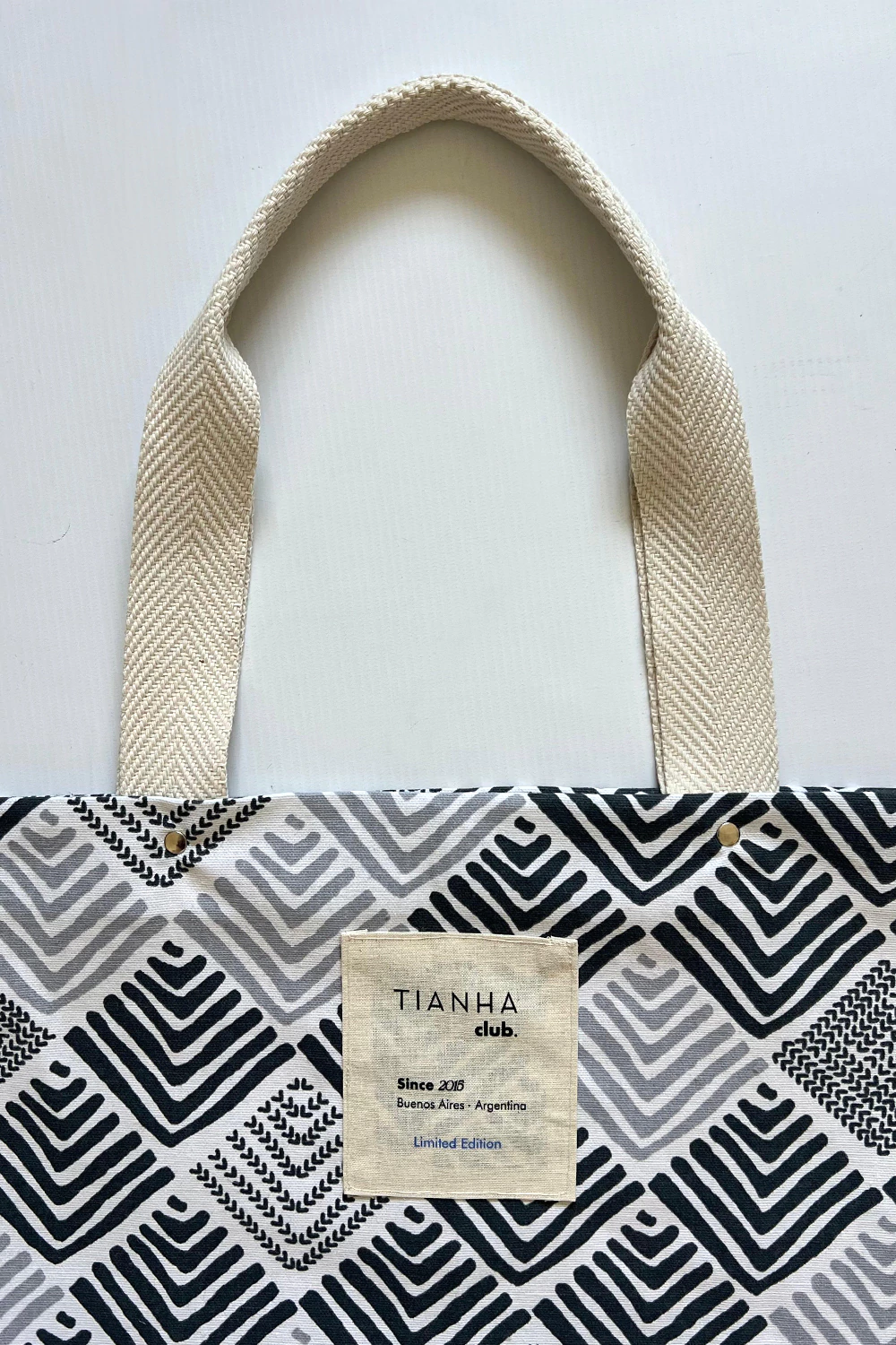 El maxibolso Toledo es un diseño exclusivo de Tianha. Está confeccionado en gabardina de algodón estampada. Su interior está forrado con lienzo natural y tiene un bolsillo interno. Apertura mediante broche imán.